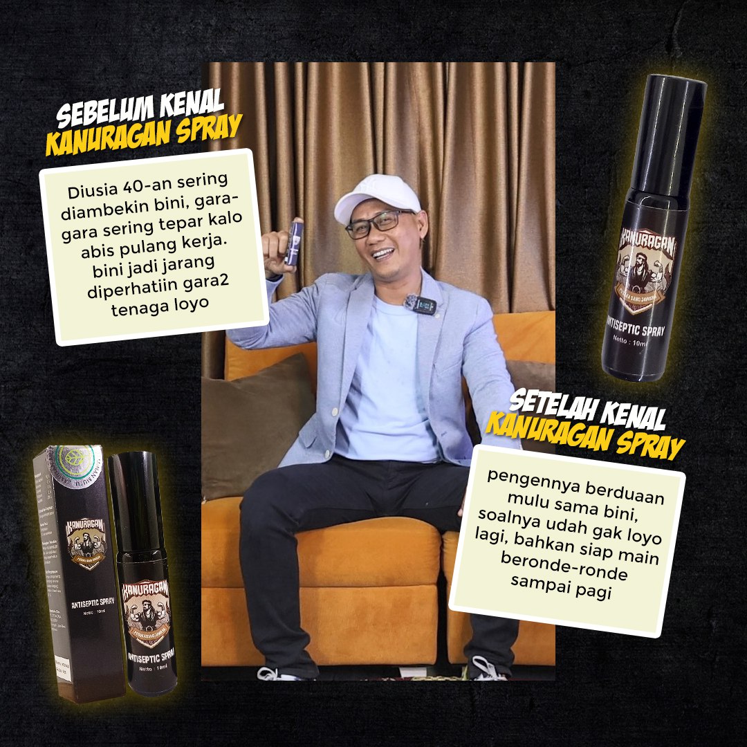 Kami jamin dengan memakai KANURAGAN SPRAY 10 menit sebelum tempur pantang keluar sebelum istri tepar.